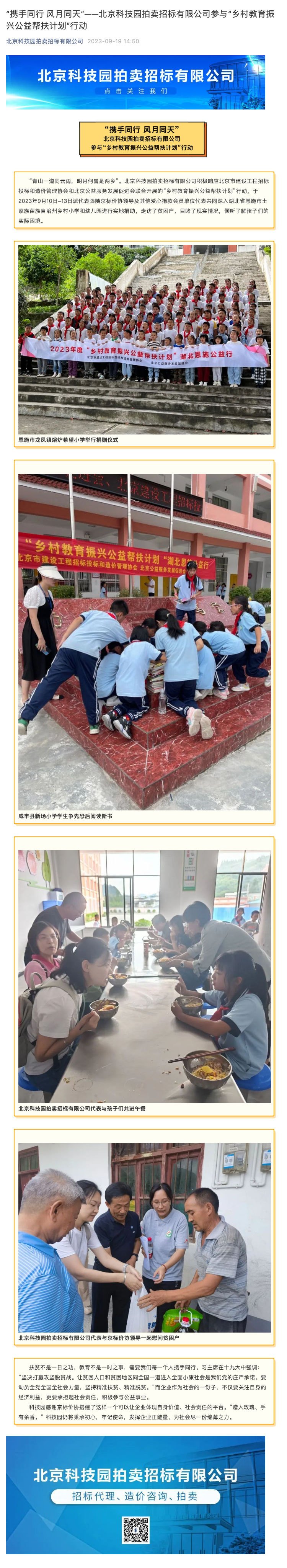 “攜手同行 風(fēng)月同天“——北京科技園拍賣招標(biāo)有限公司參與 “鄉(xiāng)村教育振興公益幫扶計(jì)劃”行動