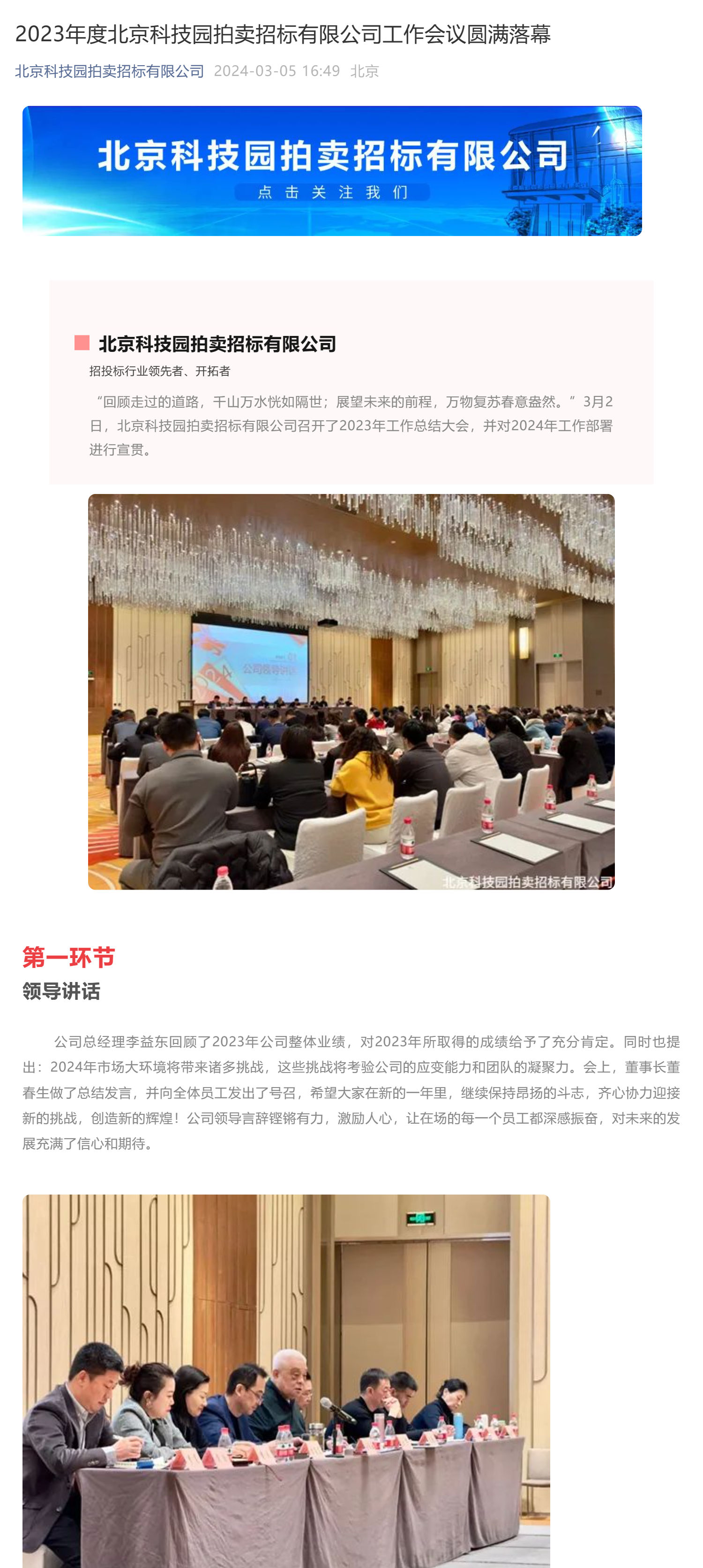 2023年度北京科技園拍賣招標有限公司工作會議圓滿落幕